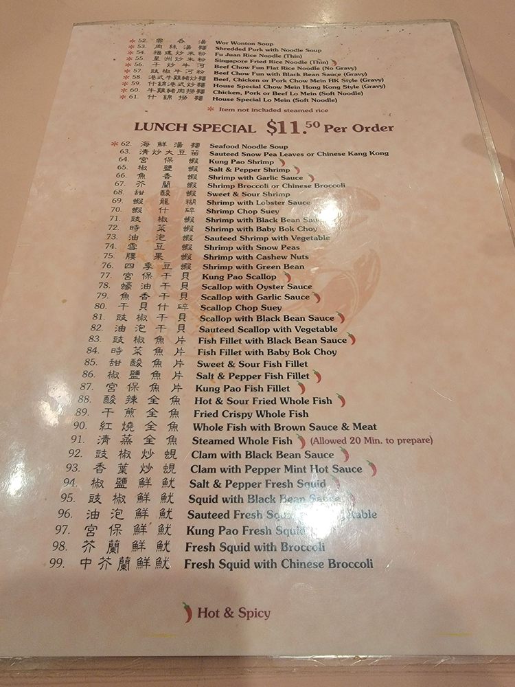 Seafood Town Chinese Restaurant in Torrance, CA offers a wide range of Chinese dishes with generous portions. Known for its delicious food, quick service, and unbeatable lunch specials, this restaurant has been a local favorite for years. Customers rave about dishes like Veggie Delight, Spicy Garlic Eggplant, and their famous French steak. The family-friendly atmosphere, accommodating staff, and diverse menu make Seafood Town a go-to spot for both dine-in and takeout. With accessible parking, vegan options, and a variety of payment methods accepted, Seafood Town provides a seamless dining experience for all. Don't miss out on their lunch specials, which include tea, soup, rice, and dessert, all at a great value. Experience the flavors of traditional Cantonese cuisine at Seafood Town Chinese Restaurant.